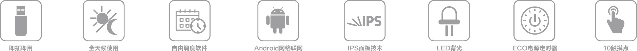 超薄機(jī)身;質(zhì)感拉絲金屬;高清畫(huà)質(zhì);觸摸極速反應(yīng);智能分屏;智能遠(yuǎn)程信息發(fā)布;可定時(shí)開(kāi)關(guān)機(jī);提前設(shè)定節(jié)目源;鋼化玻璃屏幕;可定制專屬LOGO、多種顏色、尺寸可選。